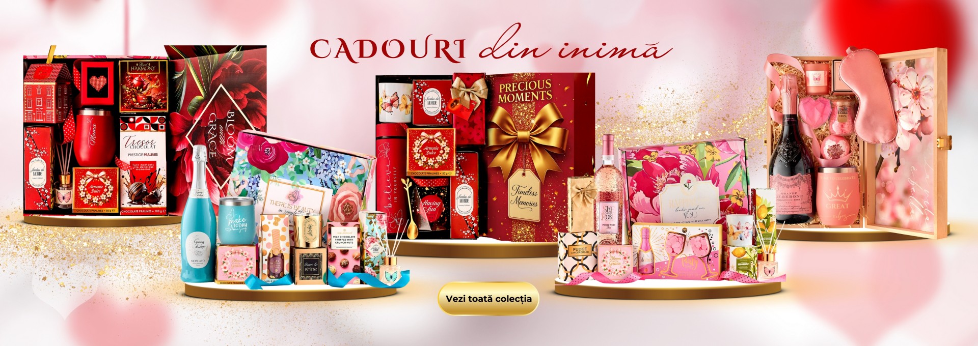 Nimic nu este mai minunat decât să oferi un dar persoanelor care te-au ajutat să ajungi unde ești acum. Indiferent de ocazie sau de sărbătoare, la noi vei găsi o varietate de coșuri cadou care sunt la fel de plăcute ochiului, cât și pentru celelalte simțuri. Selecția noastră gourmet pune la un singur loc cele mai fine bomboane de ciocolată, șampanie și vin cu gust inconfundabil, dar și alte elemente care fac din acest cadou unul memorabil. Avem o varietate largă de coșuri cadou de lux, asamblate manual, perfecte pentru a fi oferite drept cadou pentru femei sau cadou pentru bărbați. Produsele au garanția calității, fiind ideale pentru toate gusturile. Comandă online darul potrivit și mulțumește-le oamenilor importanți din viața ta cu ajutorul acestui cadou pe care cu siguranță nu îl vor uita!