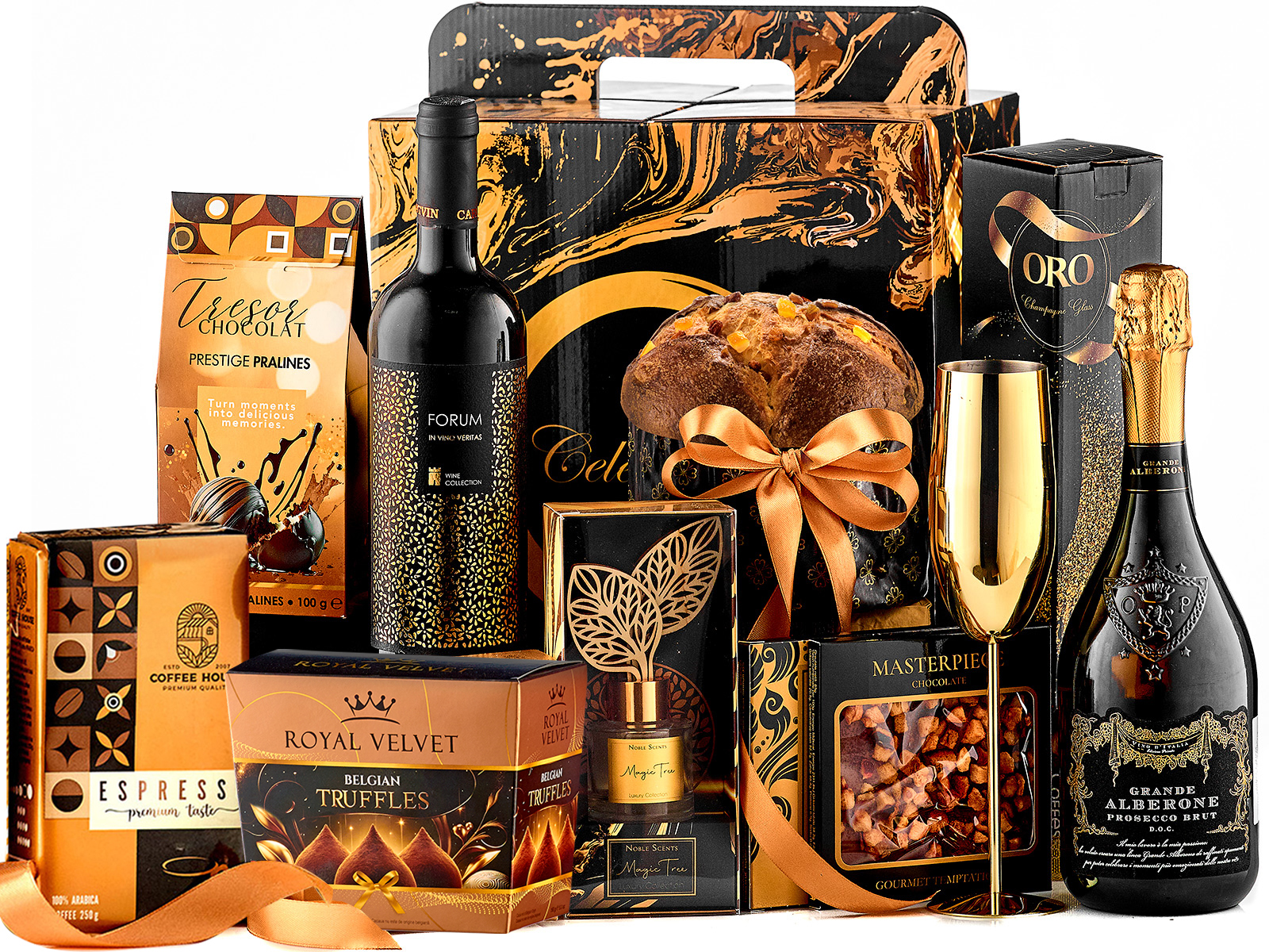 Pahar Prosecco Gold Oro, in cutie eleganta cadou