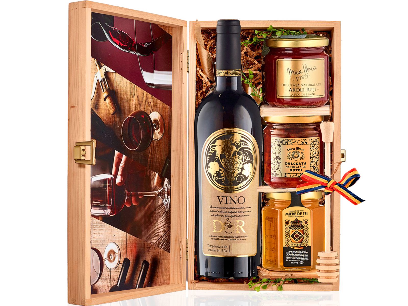Cufar de lemn cu mesaje festive serigrafiate pe capac